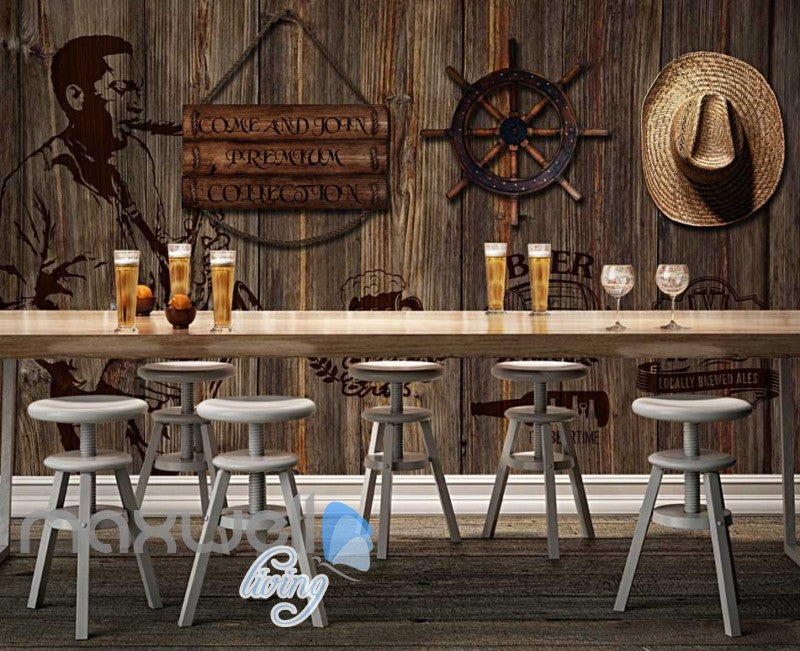 Country Style Poster Wooden Wall With Hat And Black Beer Sign Art Wall Murals Wallpaper Decals Prints Decor IDCWP-JB-000370