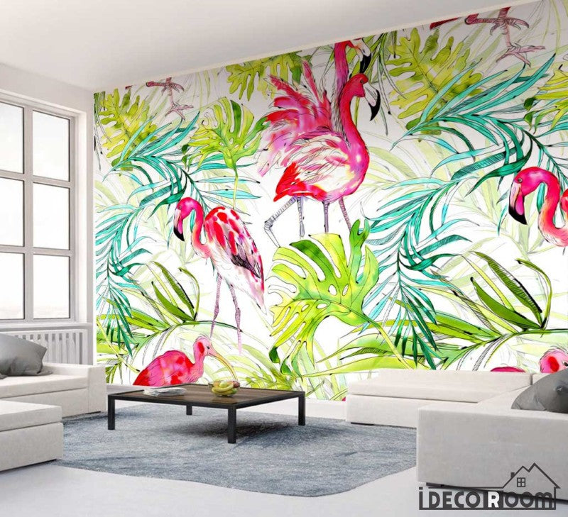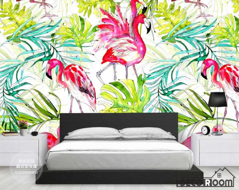 creative tropical rainforest plant flamingo wallpaper wall murals IDCWP-HL-000150