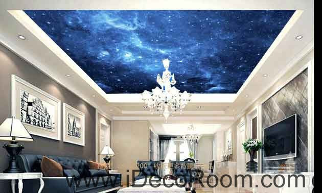 Dark Blue Night Sky Wallpaper Wall Decals Wall Art Print Business Kids Wall Paper Nursery Mural Home Decor Removable Wall Stickers Ceiling Decal