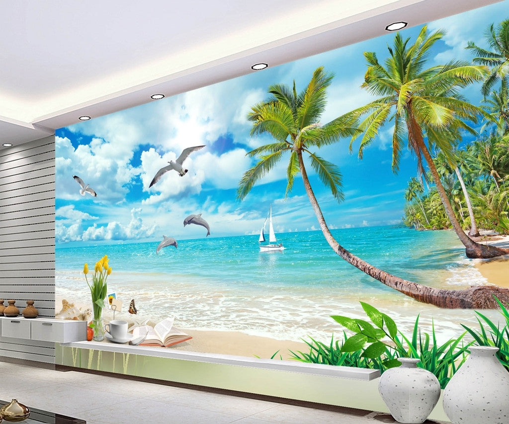 Dolphin Bay Lovers Hawaii Mediterranean Landscape Wallpaper IDCWP-DZ-000051
