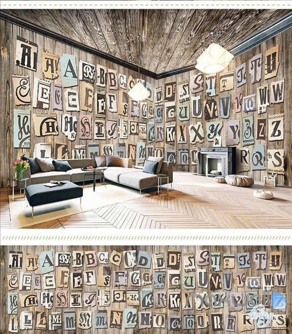 English alphabet label theme space entire room wallpaper wall mural decal IDCQW-000026