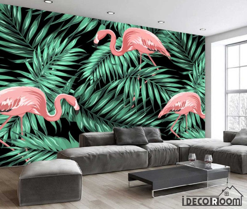 European retro banana leaf flamingo wallpaper wall murals IDCWP-HL-000359