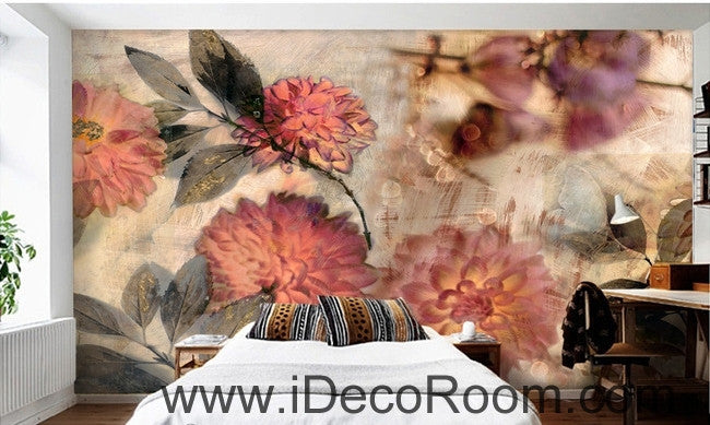 European style retro abstract pink blooming flower hydrangea oil painting effect wall art wall decor mural wallpaper wall IDCWP-000107