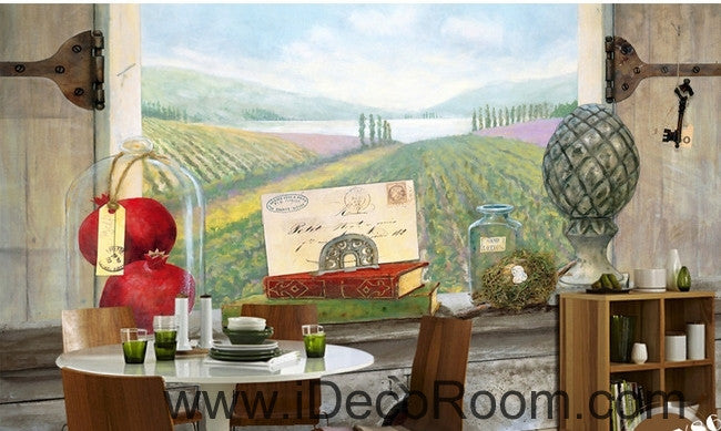 European style retro pastoral scenery ranch flower sea windowsill book painting wall art wall decor mural wallpaper wall IDCWP-000259