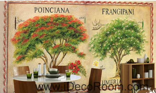 Fantastic fresh red flower tree English tree branch oil painting effect wall art wall decor mural wallpaper wall IDCWP-000122