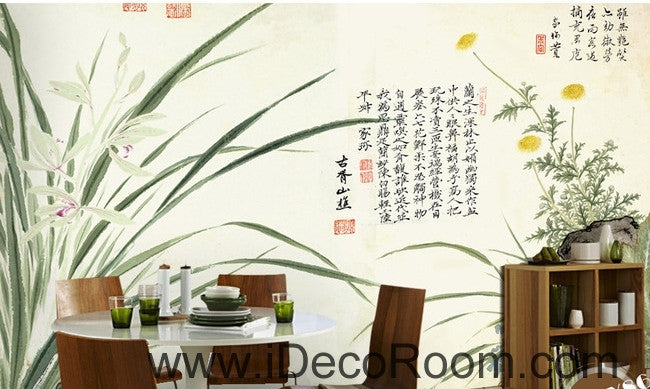 Fantasy fresh orchid leaves calligraphy daisy painting Chinese wall art wall decor mural wallpaper wall IDCWP-000154