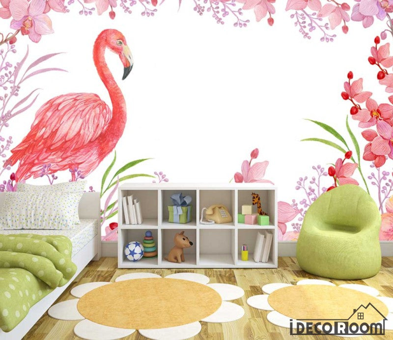 floral flamingo wallpaper wall murals IDCWP-HL-000258
