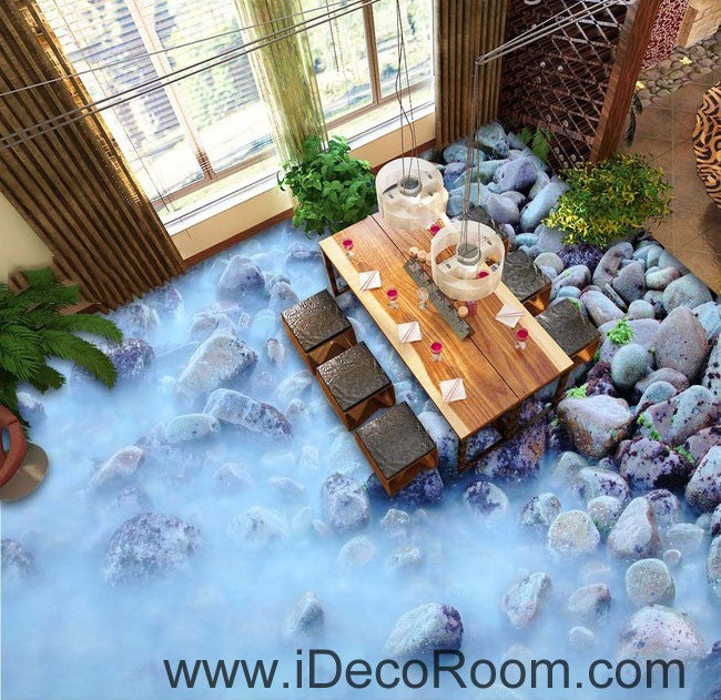 Fog Stones Rock 00063 Floor Decals 3D Wallpaper Wall Mural Stickers Print Art Bathroom Decor Living Room Kitchen Waterproof Business Home Office Gift