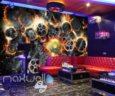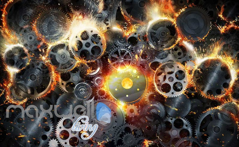 Gear Collage With Fire Art Wall Murals Wallpaper Decals Prints Decor IDCWP-JB-000270