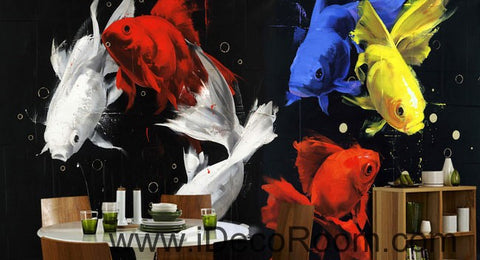 Golden Fish Yellow Blue Red Modern 000010 Wallpaper Wall Decals Wall Art Print Mural Home Decor Gift Office Business