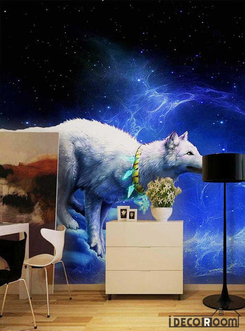 Graphic Design Blue Space 3D White Wolf Moon Living Room Art Wall Murals Wallpaper Decals Prints Decor IDCWP-JB-001102