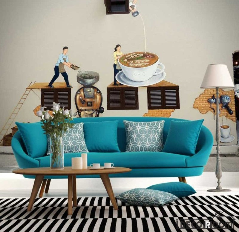 Graphic Design Coffee Factory Living Room Coffee Shop Art Wall Murals Wallpaper Decals Prints Decor IDCWP-JB-000961