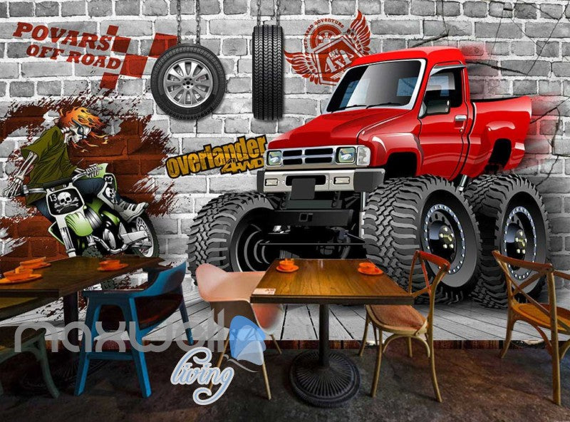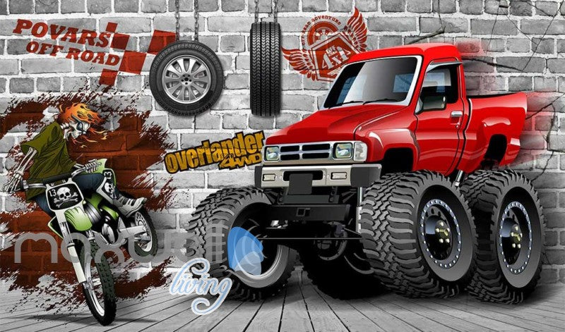 Graphic Design Truck And Motorbike Breaking Through Wall Art Wall Murals Wallpaper Decals Prints Decor IDCWP-JB-000383