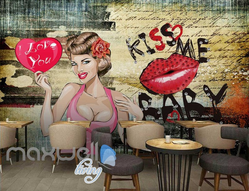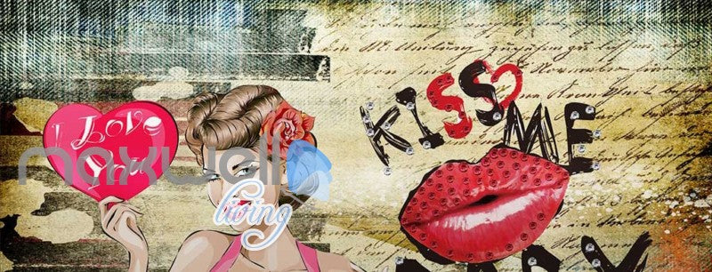 Graphic Design Woman Holding I Love You Heart Art Wall Murals Wallpaper Decals Prints Decor IDCWP-JB-000849