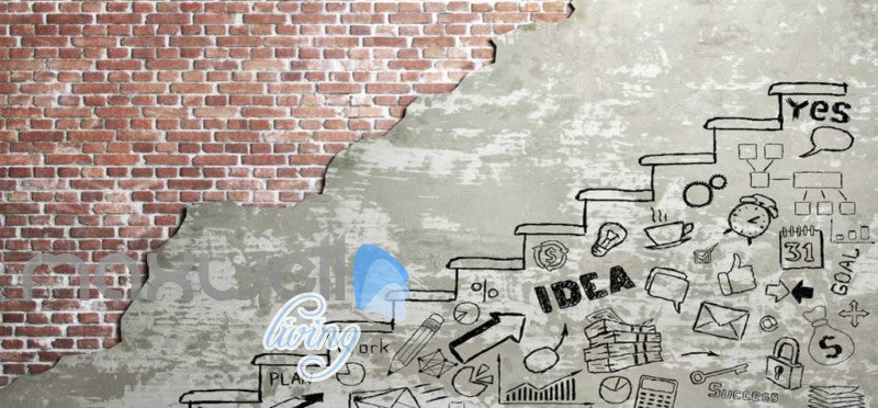 Half Wall Brick Wall Cement Wall With Drawings Art Wall Murals Wallpaper Decals Prints Decor IDCWP-JB-000788