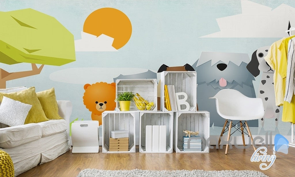 Hand-painted children's cartoon pet dog fresh nature entire room wallpaper wall mural decal IDCQW-000068