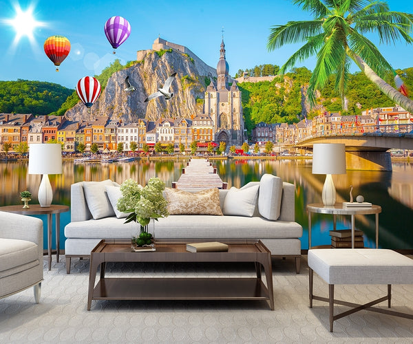 HD Mediterranean 3D Seascape Wooden Bridge Island Castle Wallpaper IDCWP-DZ-000246