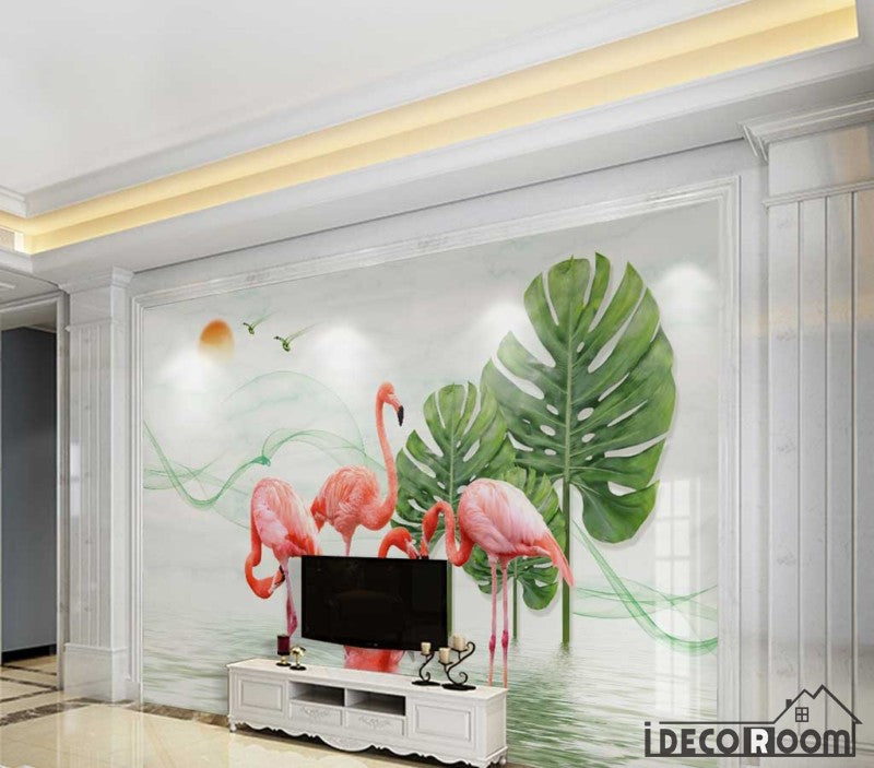 leaves flamingo microcrystalline mosaic marble wallpaper wall murals IDCWP-HL-000127