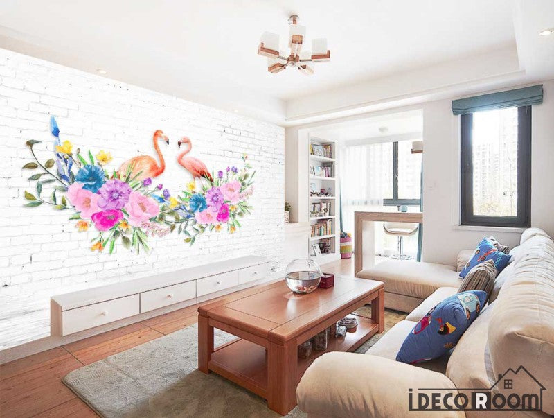 Love flamingo flowers Nordic wallpaper wall murals IDCWP-HL-000422