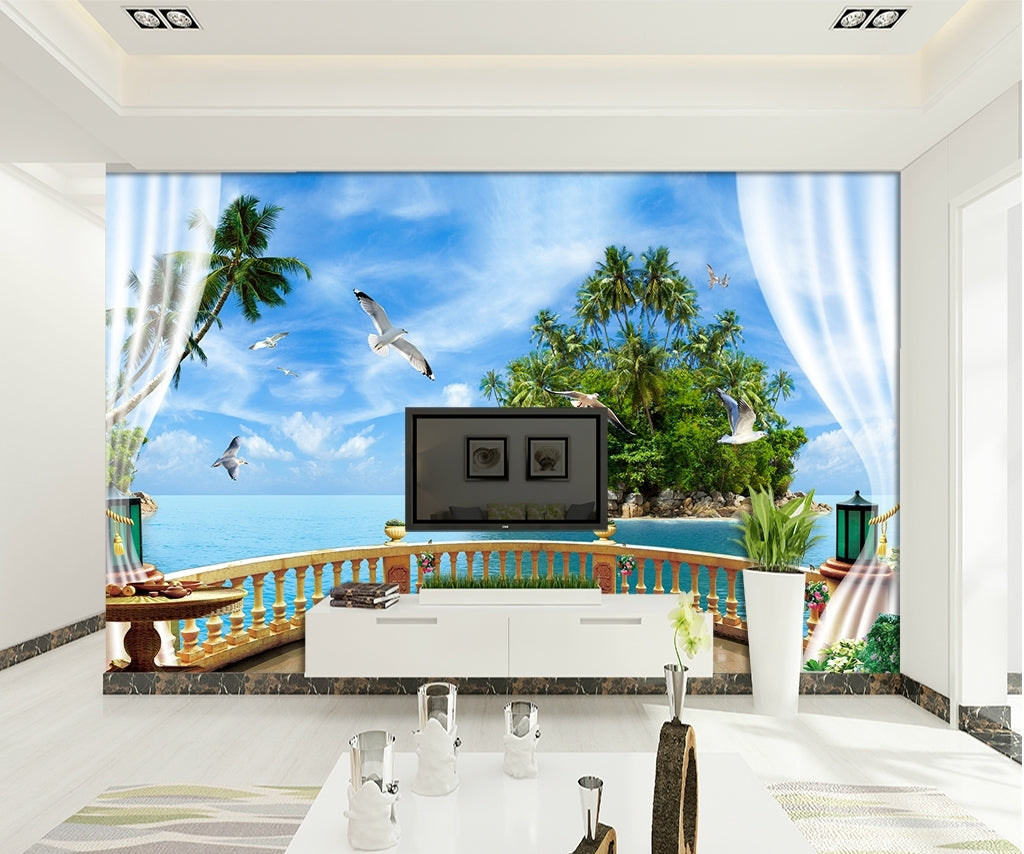 Mediterranean European luxury balcony sea view Wallpaper IDCWP-DZ-000130