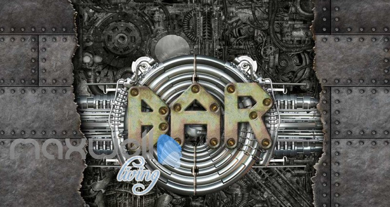 Metal Industrial Wall With Bar Sign Art Wall Murals Wallpaper Decals Prints Decor IDCWP-JB-000236