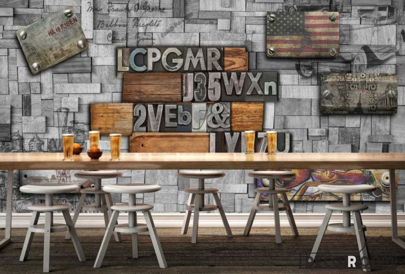 Metal Wall 3D Typographic Letters Usa Flag Restaurant Art Wall Murals Wallpaper Decals Prints Decor IDCWP-JB-001137