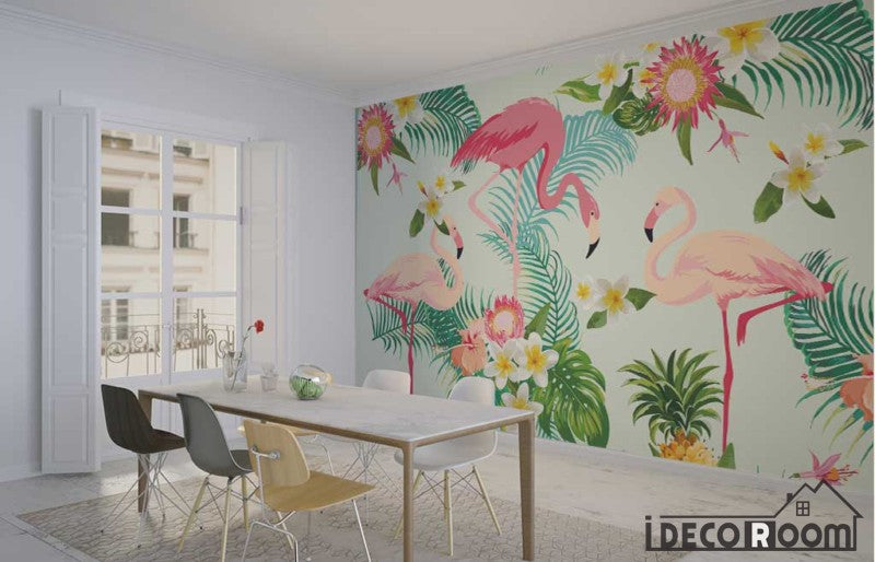 minimalist pastoral flamingo tropical rainforest wallpaper wall murals IDCWP-HL-000263