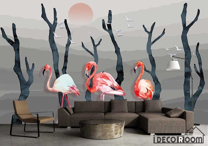 Modern Abstract Ink Painting Trunk Flamingo wallpaper wall murals IDCWP-HL-000136