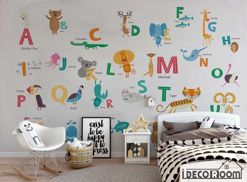 Nordic Cartoon Animal 26 Letter Theme wallpaper wall murals IDCWP-HL-000581
