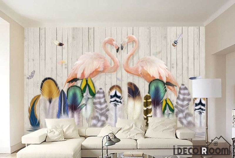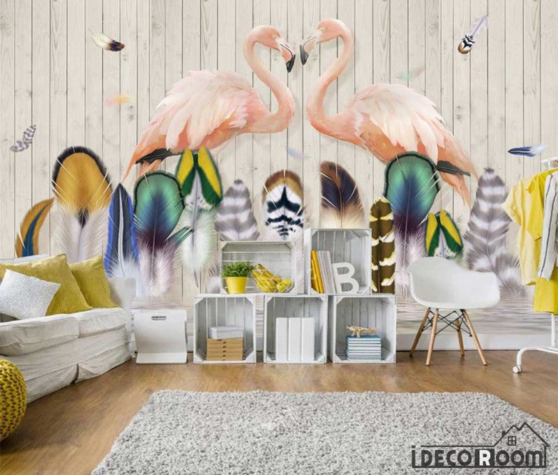 Nordic feather flamingo wallpaper wall murals IDCWP-HL-000174