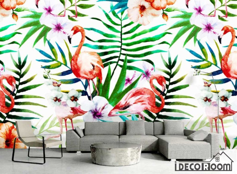 Nordic flamingo animal plant floral wallpaper wall murals IDCWP-HL-000315