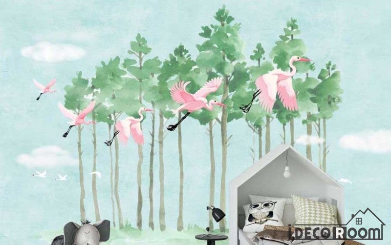 Nordic flamingo forest wallpaper wall murals IDCWP-HL-000147