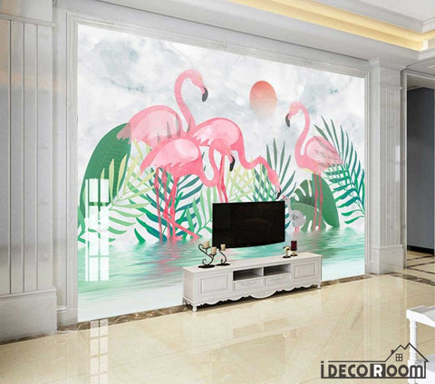 Nordic flamingo tropical plant marble wallpaper wall murals IDCWP-HL-000185