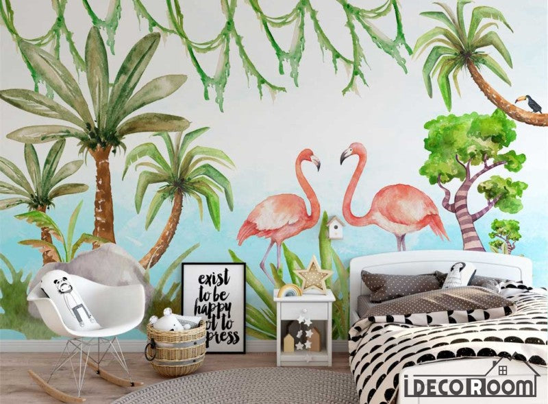 Nordic minimalist cartoon animal flamingo plant wallpaper wall murals IDCWP-HL-000647