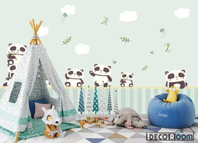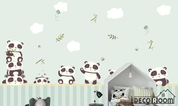 Nordic minimalist cartoon panda children's house wallpaper wall murals IDCWP-HL-000178
