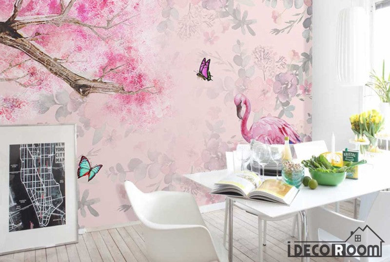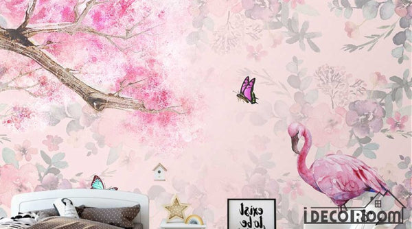 Nordic romantic cherry blossom flamingo wallpaper wall murals IDCWP-HL-000383