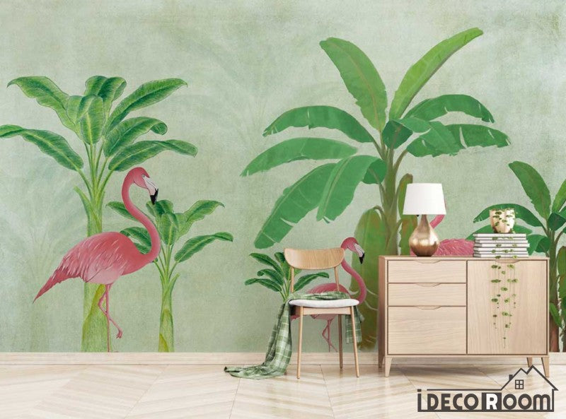 Nordic tropical plant plantain tree flamingo wallpaper wall murals IDCWP-HL-000340
