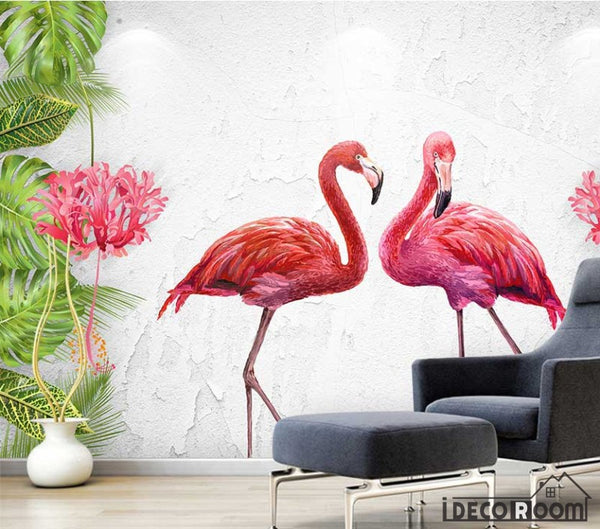 Nordic wind plant green leaf flamingo wallpaper wall murals IDCWP-HL-000154