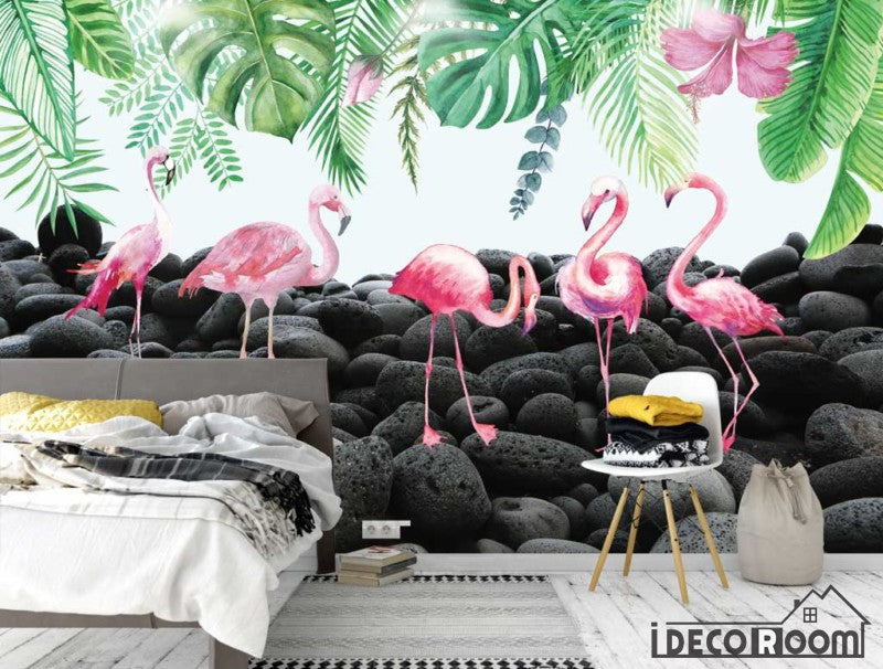 Nordic wind tropical rainforest plant flamingo wallpaper wall murals IDCWP-HL-000143