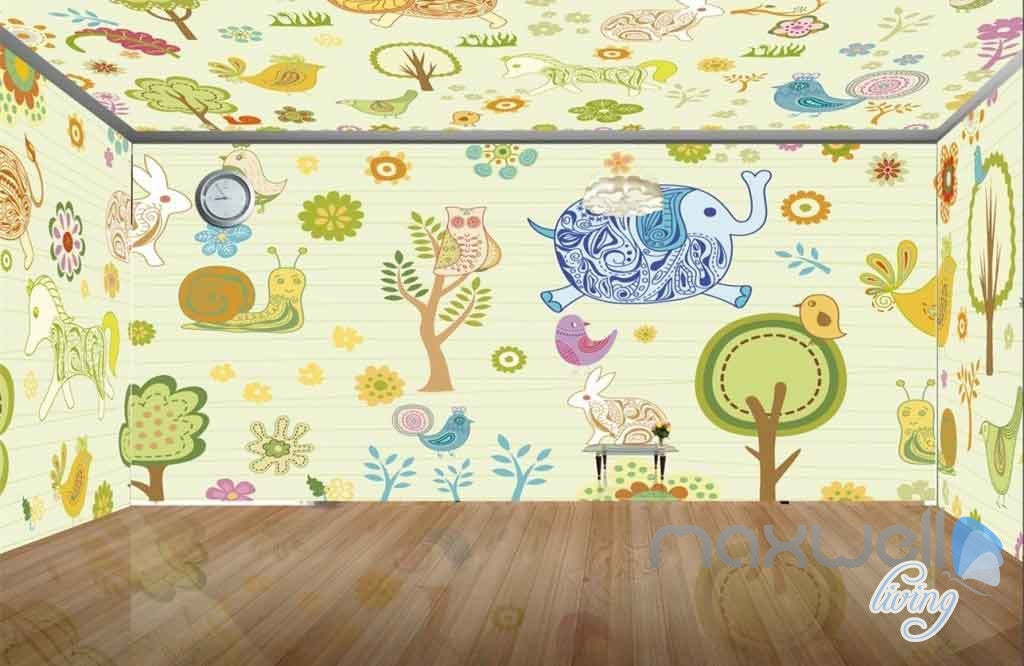 Owl Tree Elephant Rabit Entire Room Wallpaper Wall Murals Art Print Kids Decor IDCQW-000081