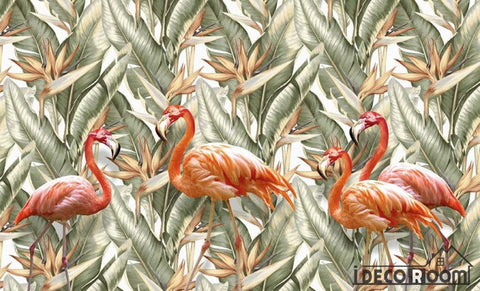 palm leaf tropical rainforest plant flamingo wallpaper wall murals IDCWP-HL-000445