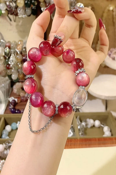 Ignite your passion with the "Passionate Garnet Bead Bracelet with Oval Crystal Accent." This captivating bracelet showcases the deep red hues of garnet-like beads, each one polished to a lustrous finish that reflects light beautifully. The beads are separated by sparkling crystal accents, adding a touch of elegance and sophistication to the design.