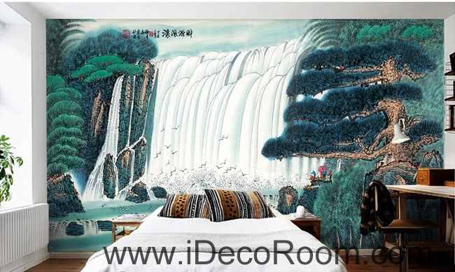 Pine Waterfall Water and Fortune Treasure Basin wall art wall decor mural wallpaper wall IDCWP-000137