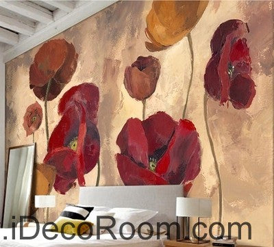 Pink Red Brown Poppy Flower IDCWP-000078 Wallpaper Wall Decals Wall Art Print Mural Home Decor Gift