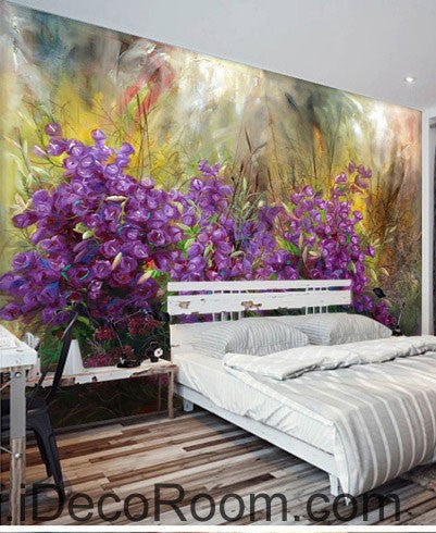 Purple Flower Oilpainting Effect 000002 Wallpaper Wall Decals Wall Art Print Mural Home Decor Gift Office Business