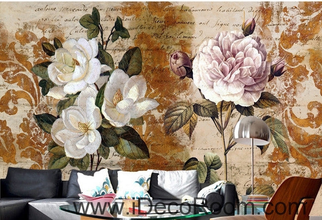 Retro Pattern Flower Rose Tea Flower Peony oil painting effect wall art wall decor mural wallpaper wall IDCWP-000090