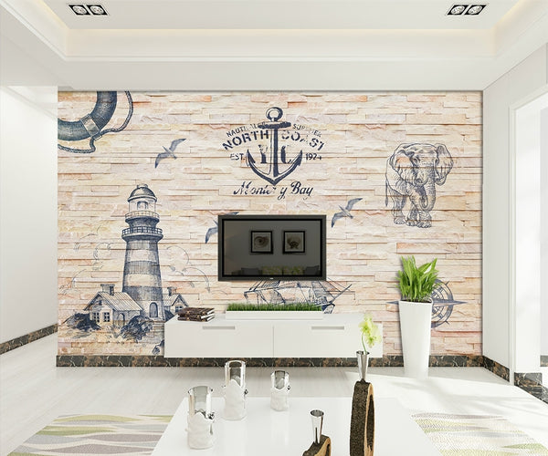 Retro vintage brick wall mediterranean Wallpaper IDCWP-DZ-000158