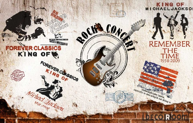 Rock Guitar Collage Wall Living Room Art Wall Murals Wallpaper Decals Prints Decor IDCWP-JB-000913