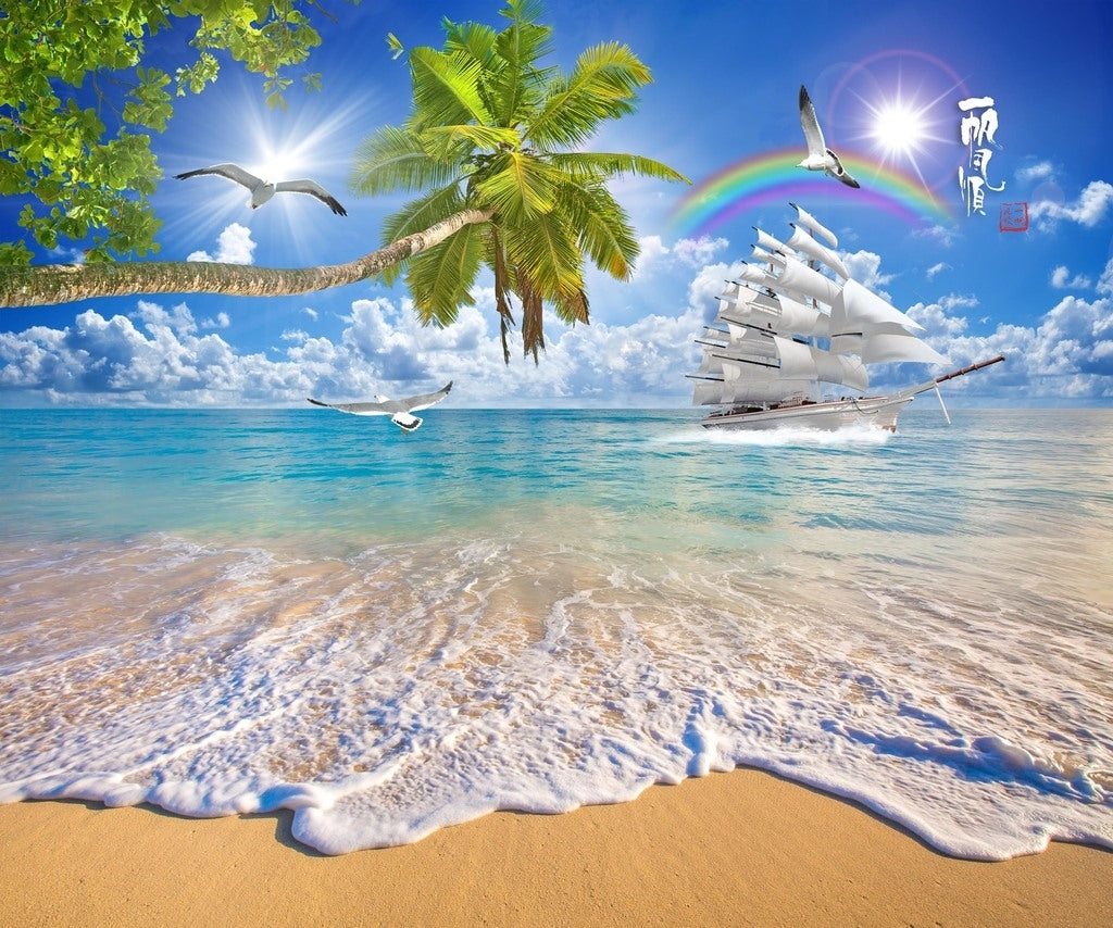 sailing beach sand 3D landscape Wallpaper IDCWP-DZ-000192