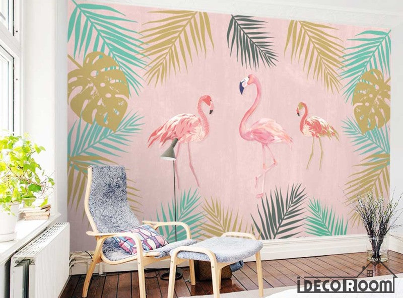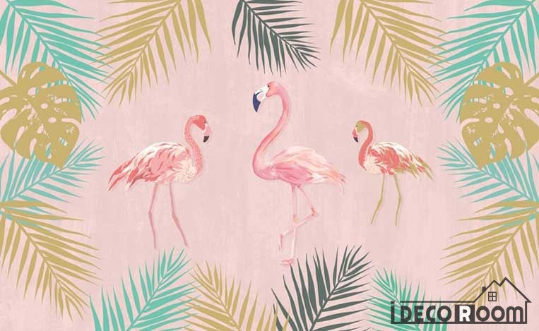 Scandinavian tropical plant Flamingo wallpaper wall murals IDCWP-HL-000352
